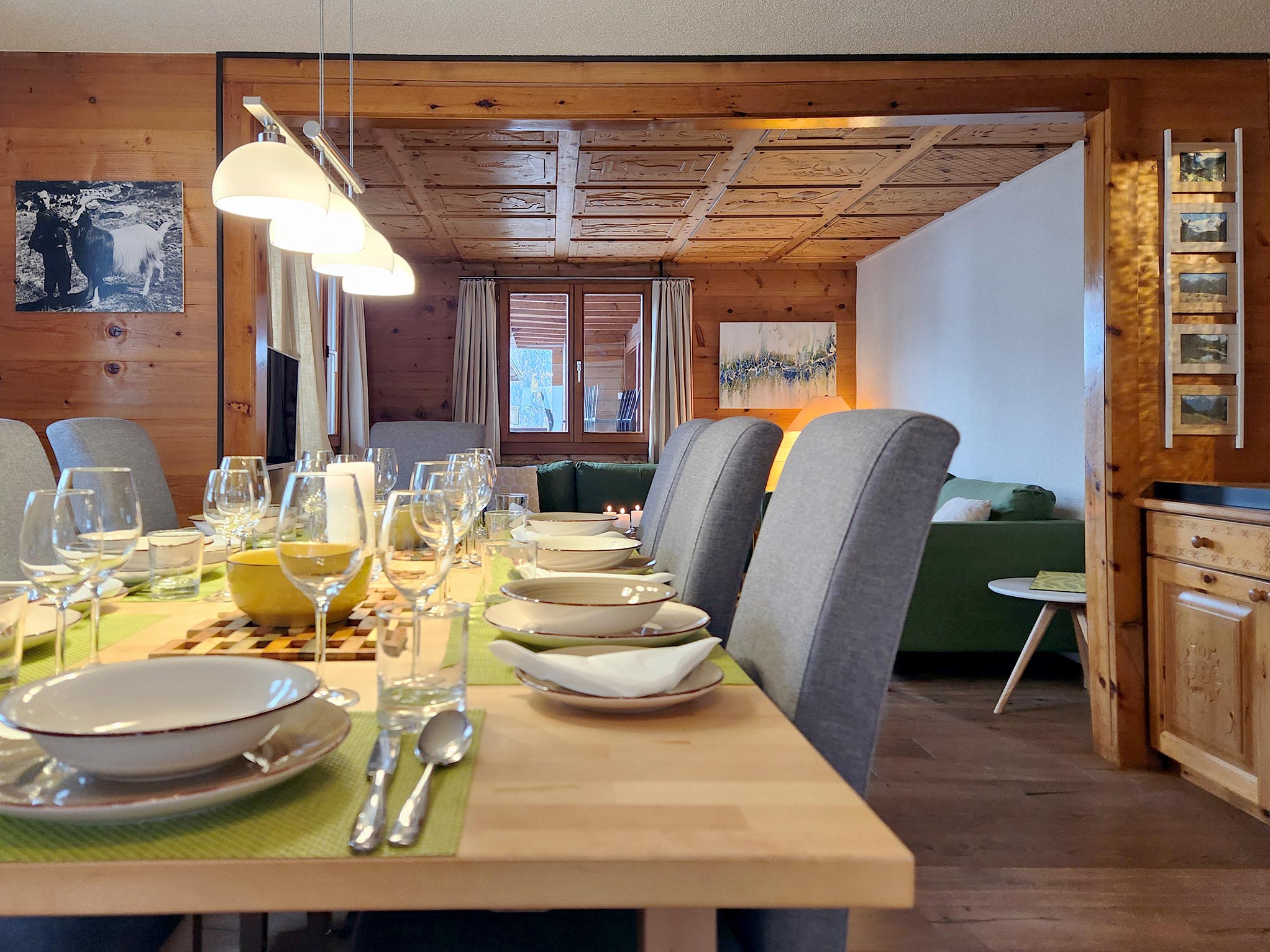Die grosse, moderne und gemütliche 7.5 Zimmerwohnung befindet sich im Dorfzentrum und ist für bis zu 8 Personen ausgelegt
